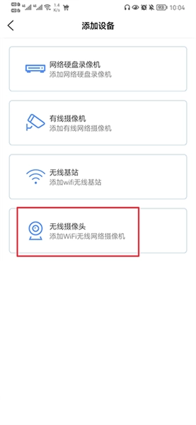 3、选择无线摄像机的添加方式