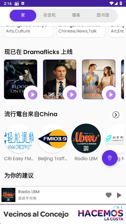 3、进入首页,就能获取推荐电台功能。