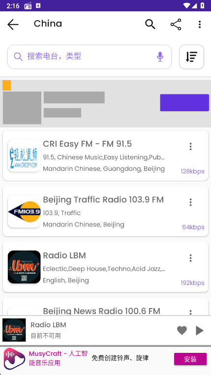 5、您就可以发现本地的收音机电台了