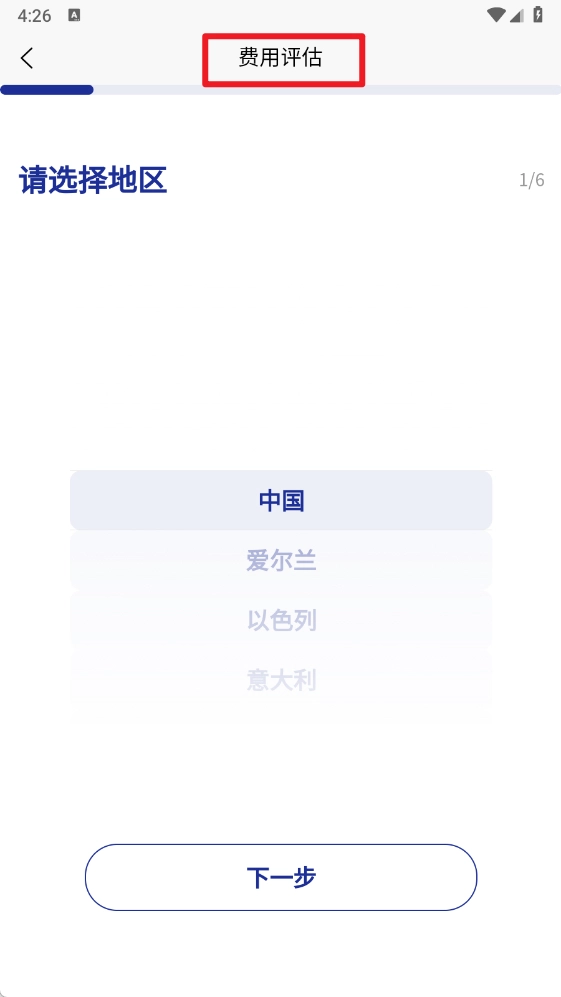 4、进入费用评估,选择地区即可估算留学所需的费用情况。
