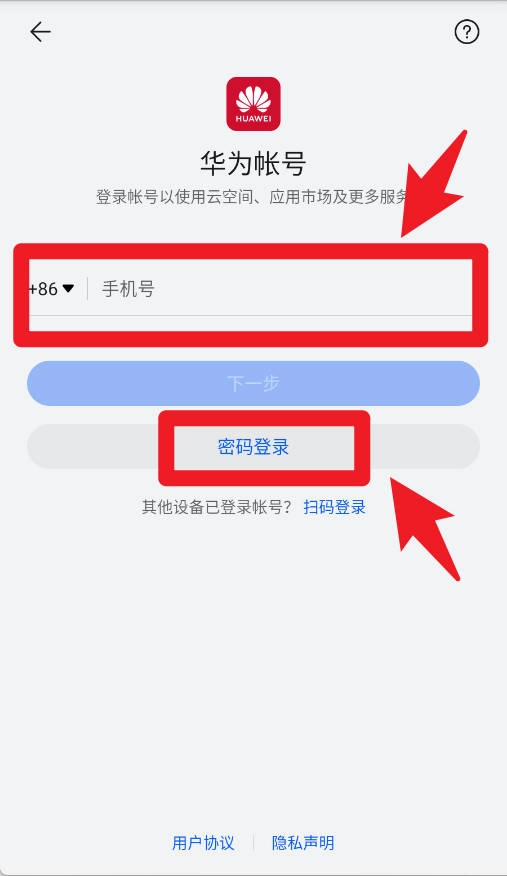1、在登录界面输入手机号后,既可以选择进行下一步操作,也能够点击密码登录直接进入系统,为不同用户提供便捷的登录方式。