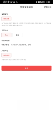 3、选择发票抬头为个人或企业,如果是企业发票,就是填写单位名称和纳税人识别号。输入收票人信息后,点击【确定】就搞定了!