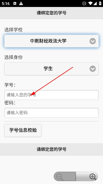 第一次运行需要绑定你的学号,请选择学校,输入学号和密码。