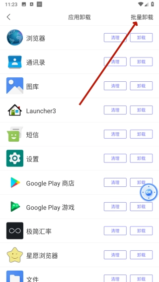 2、在应用卸载页面,点击【批量卸载】,进入批量卸载选择页面。