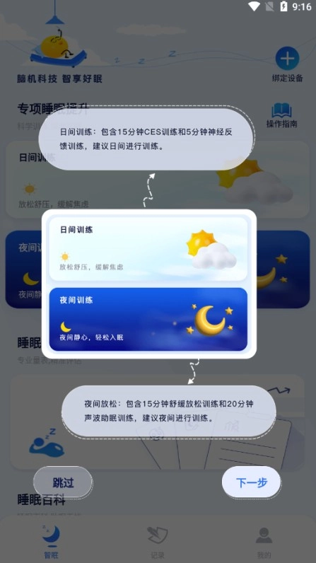 2、成功绑定对应设备后,即可开启 CES 训练,包含日间训练与夜间训练两种模式。