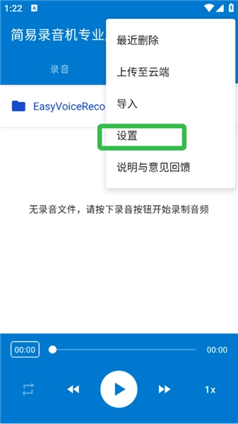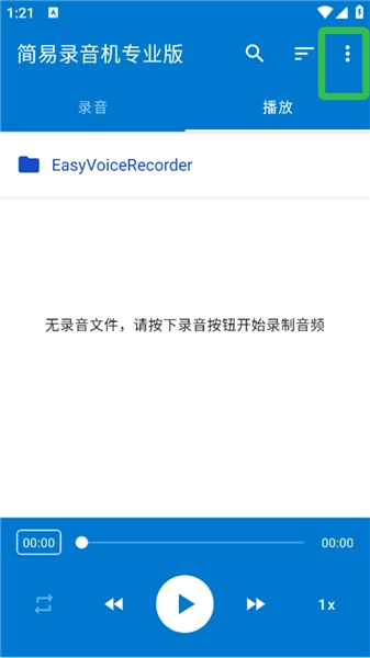 1. 开启简易录音机专业版,轻点右上角的三点标志。
