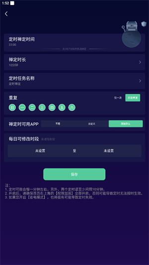 【夜间禅定】夜间定时禅定锁机,帮你养成早睡的小习惯,结合懒人闹钟强制起床后才可解锁闹钟,更加有助于养成早睡早起的好习惯